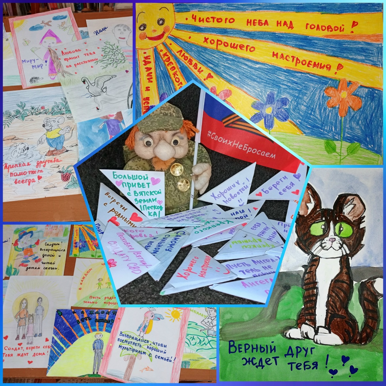 В сентябре в Песковской библиотеке им. Ф. Ф. Павленкова снова прошла патриотическая акция "Открытка для солдата" - дети рисовали открытки для наших военнослужащих, которые находятся в зоне СВО.